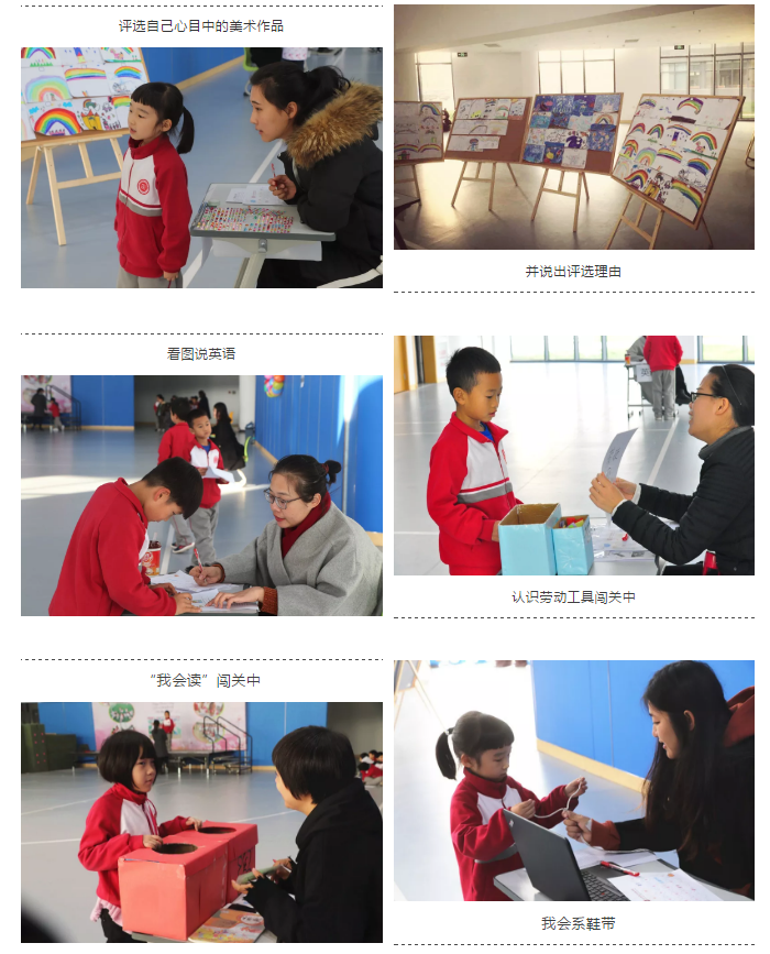本次活動項目包含了學生所學的所有學科知識,涵蓋學校課程體系中的語言與文學、數(shù)學與思維、人文與社會、科學與技術、藝術與審美、運動與健康、自我管理、綜合實踐。具體內容有拼讀、識字、讀和背、認字說詞語、看圖問答、我會數(shù)、認左右、比大小、我會擺、我會算、會測量、會看圖列式、會解決問題、會認角、會數(shù)角、看圖識別勞動工具、美術選作品、評作品、系鞋帶、徒手操、模唱歌曲、活動拓展。其中,學習管理一項主要是考查學生的課堂自我約束、情緒管理等認知。