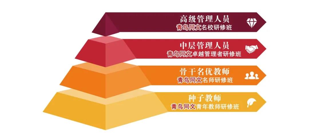 為堅(jiān)定落實(shí)青鳥同文教育“3511人才工程”(30位校長、園長(含儲備)、50位中層管理者(含儲備)、100位學(xué)科同文骨干名師、150位同文種子教師),逐步實(shí)現(xiàn)“以事業(yè)凝聚人、以創(chuàng)新吸引人、以愛心團(tuán)結(jié)人、以機(jī)制穩(wěn)定人”的人才發(fā)展理念。青鳥同文教育以各類人才實(shí)際發(fā)展需求為導(dǎo)向,有針對性地制定適配的課程體系,旨在培養(yǎng)優(yōu)秀的國際化學(xué)校領(lǐng)導(dǎo)者,未來教育的專家型人才,為集團(tuán)戰(zhàn)略發(fā)展提供智力支持,全面落實(shí)集團(tuán)的辦學(xué)理念和辦學(xué)目標(biāo),進(jìn)而提升集團(tuán)化辦學(xué)國際影響力。