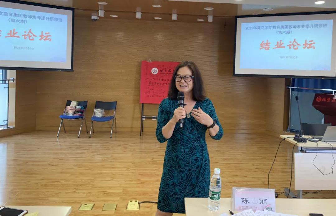 陳麗教授有感而發(fā),本次研修的安排,讓她看到青鳥同文教育對(duì)教師隊(duì)伍的重視和培養(yǎng)。教師是學(xué)校持續(xù)發(fā)展的中堅(jiān)力量,這是一個(gè)有理想、有夢(mèng)想、有才華的團(tuán)隊(duì),能腳踏實(shí)地,還能仰望星空。陳教授期待大家做學(xué)習(xí)型老師,做一個(gè)終身學(xué)習(xí)者,將本次收獲學(xué)以致用,在課堂中實(shí)踐起來,叮囑老師們關(guān)注前沿教育理論,跟隨國(guó)家教育發(fā)展計(jì)劃,培養(yǎng)出對(duì)祖國(guó)、對(duì)世界有貢獻(xiàn)的人才。