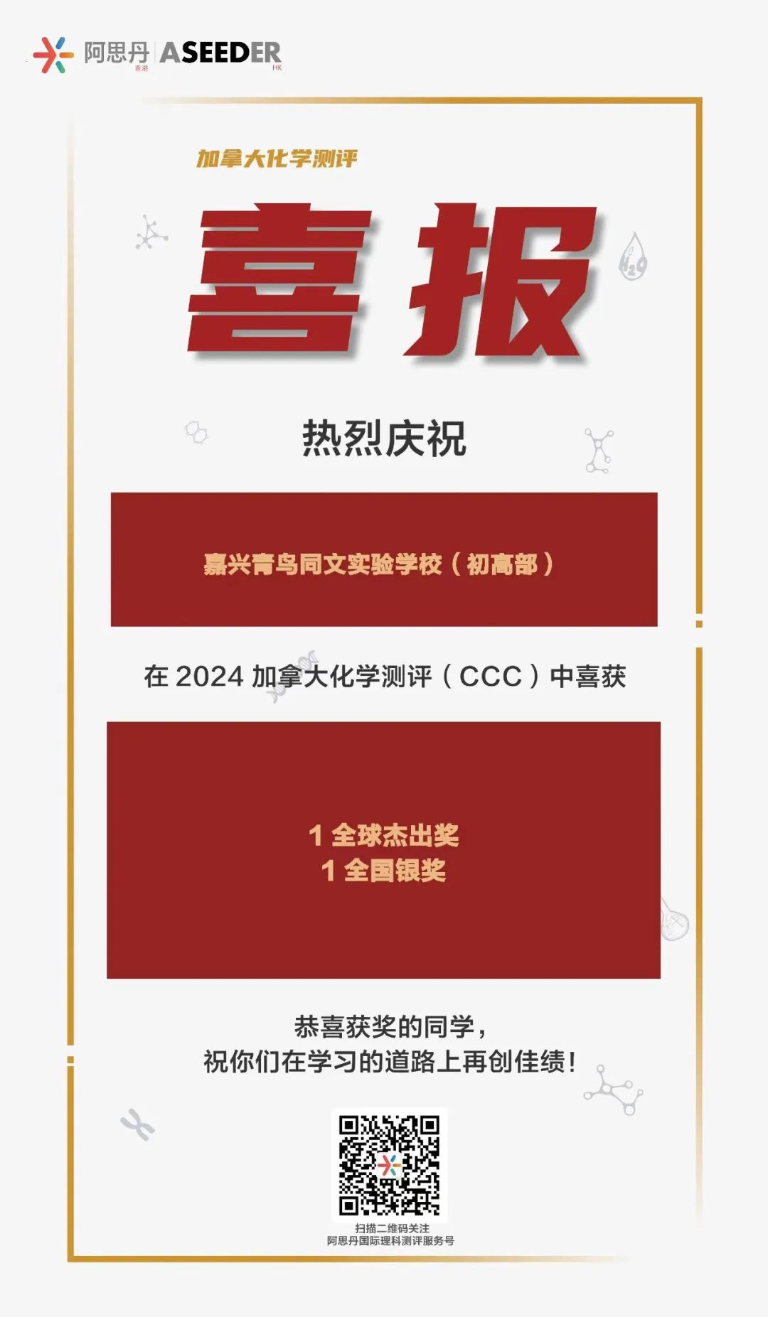 恭喜同文部10年級Joseph同學在加拿大化學測評(CCC)競賽中脫穎而出,斬獲佳績,希望繼續(xù)在化學領域乘風破浪,披荊斬棘!