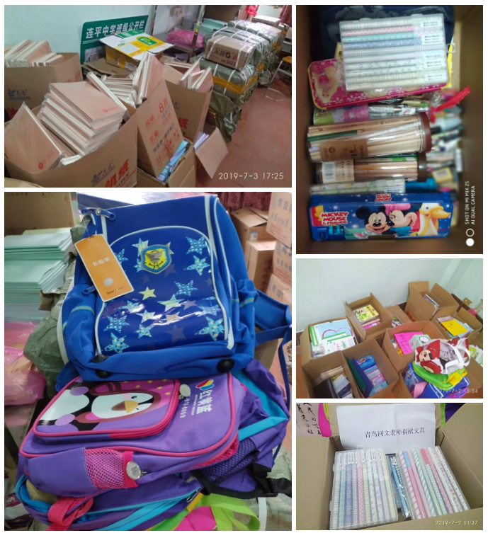 募捐的錢款通過和連平中學(xué)協(xié)商后,由集團(tuán)統(tǒng)一安排采購文具和圖書。購買了大量的文具:筆袋、簽字筆、單線本、橡皮擦、鉛筆、三角板套尺、不銹鋼水杯、雙肩書包及A4筆記本等,以便幫助學(xué)生們盡快恢復(fù)學(xué)習(xí)。同時,采購了上千本師生閱讀書籍,涵蓋古今中外各類名篇小說,希望在災(zāi)后豐富師生們的精神生活,用知識和希望撫慰受災(zāi)同胞的心靈。